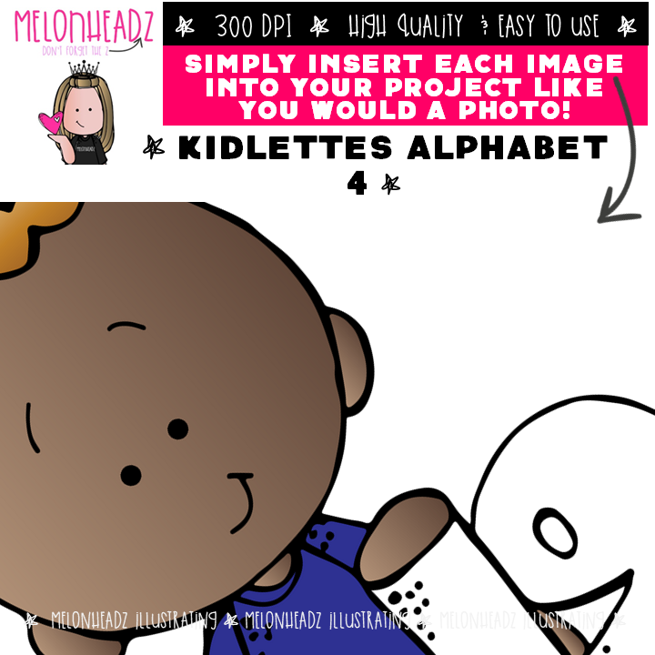 Kidlettes Alphabet clip art 4, Number clip art COMBO PACK: This illustrated set contains all of the clip art images as shown in the preview picture. COLORED and BLACK AND WHITE  illustrations included.