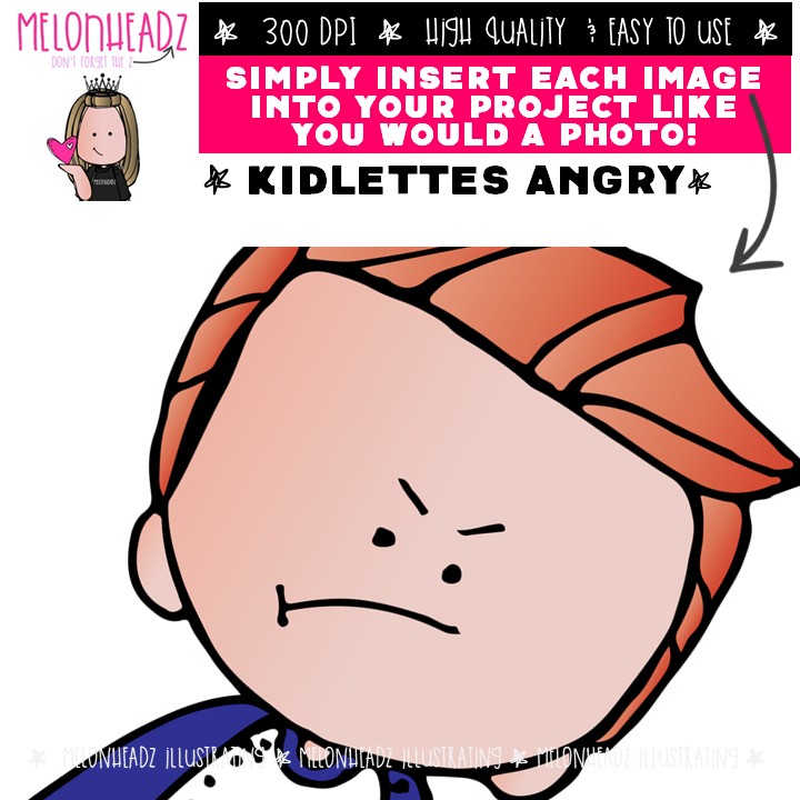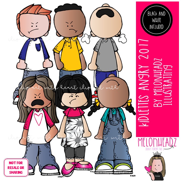 Kidlettes clip art 2017, Angry clip art, Emotions clip art Mini: This illustrated set contains all of the clip art images as shown in the preview picture. COLORED and BLACK AND WHITE illustrations included.