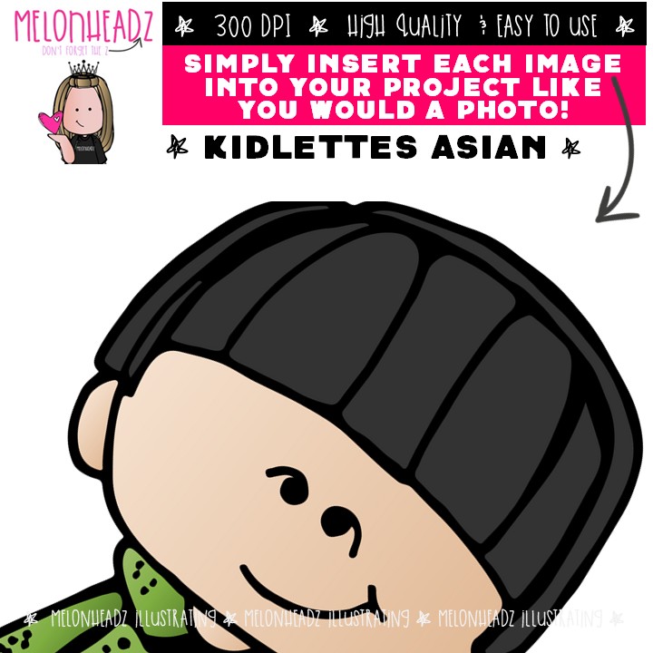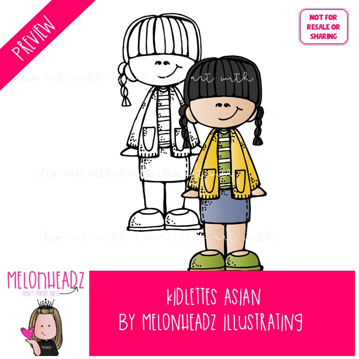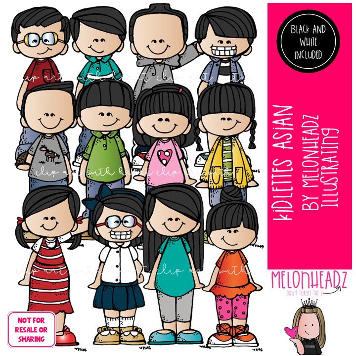 Kidlettes clip art, Asian kids clip art COMBO PACK: This illustrated set contains all of the clip art images as shown in the preview picture. COLORED and BLACK AND WHITE illustrations included.