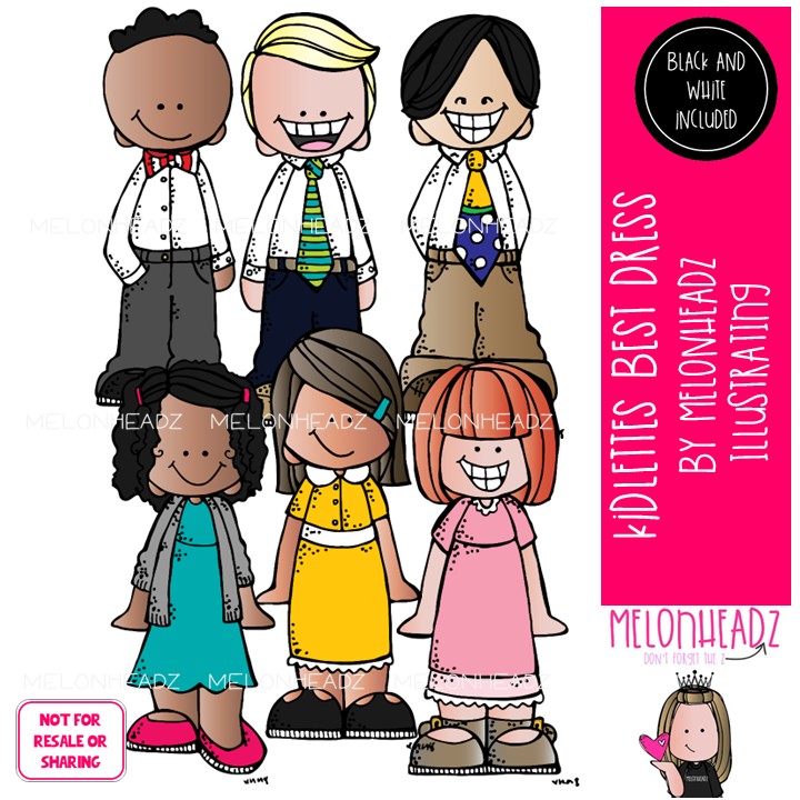 Kidlettes clip art, Best Dress clip art, Sunday Best clip art Mini: This illustrated set contains all of the clip art images as shown in the preview picture. COLORED and BLACK AND WHITE illustrations included.
