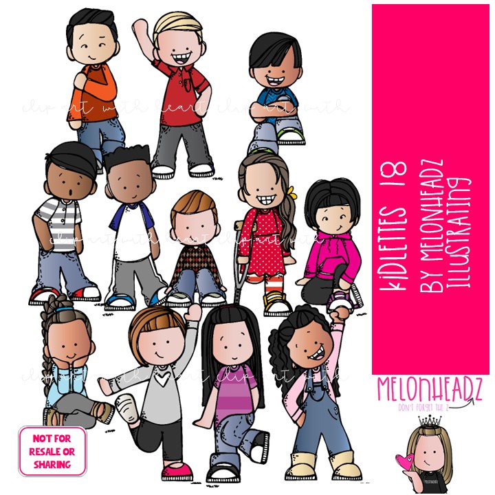 Kidlettes clip art 18, Kids clip art COLORED Version: This illustrated set contains all of the clip art images as shown in the preview picture. COLORED illustrations included.