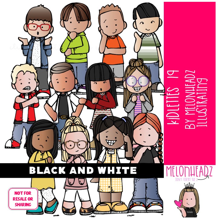 Kidlettes clip art 19, kids clip art BLACK AND WHITE: This illustrated set contains all of the clip art images as shown in the preview picture. BLACK AND WHITE illustrations included.