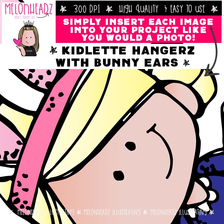 Kidlettes clip art, Bunny Ears, Easter, Hangerz Mini: This illustrated set contains all of the clip art images as shown in the preview picture. COLORED and BLACK AND WHITE illustrations included.