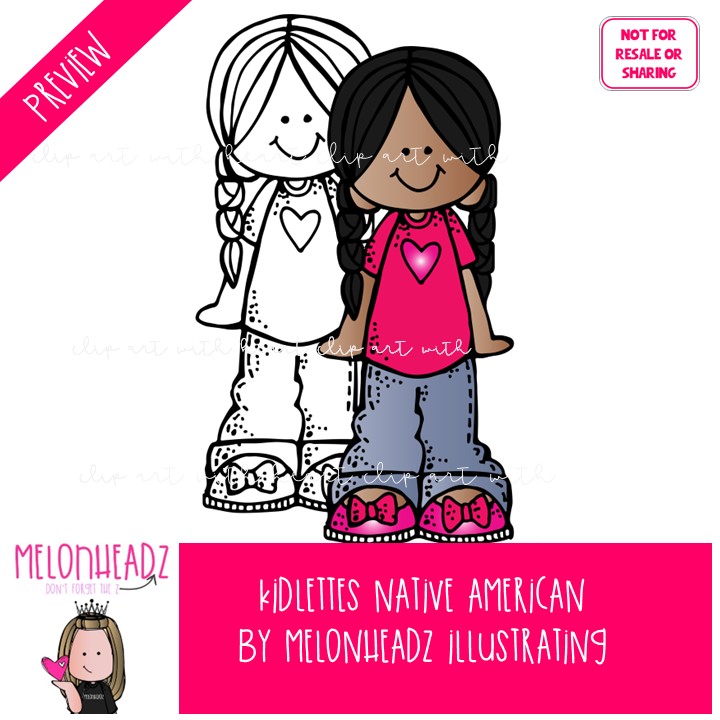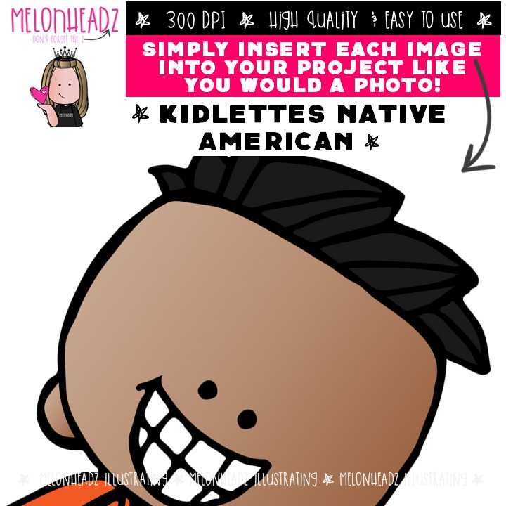 Kidlettes clip art, Native American clip art COMBO PACK: This illustrated set contains all of the clip art images as shown in the preview picture. COLORED and BLACK AND WHITE illustrations included.