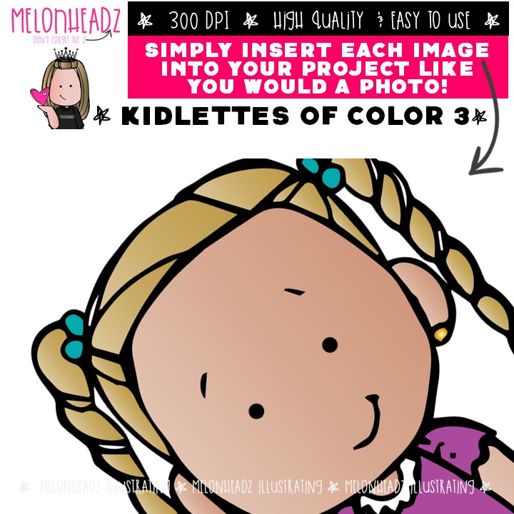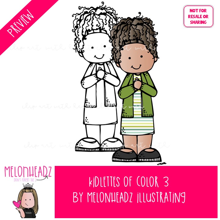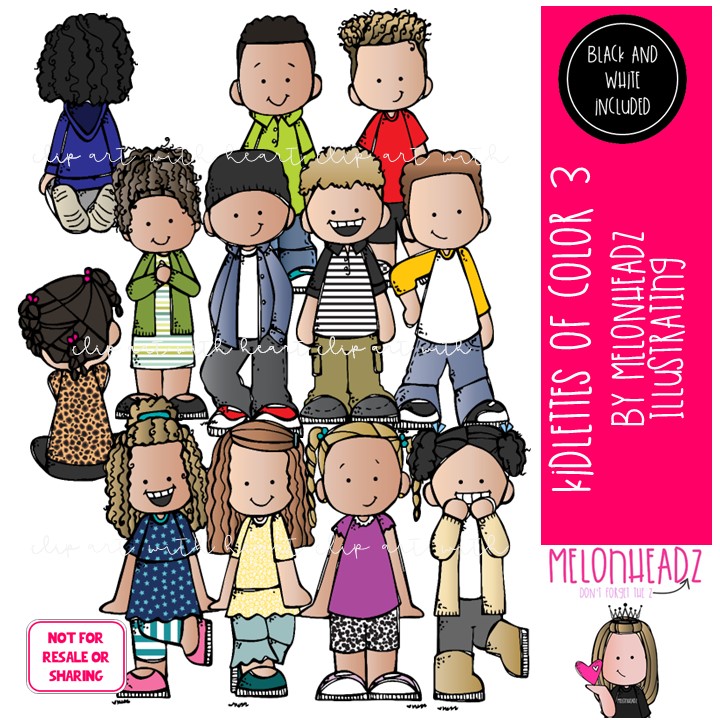 Kidlettes of Color clip art 3, Biracial kids clip art COMBO PACK: This illustrated set contains all of the clip art images as shown in the preview picture. COLORED and BLACK AND WHITE  illustrations included.