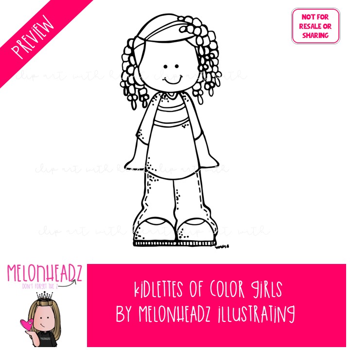 Kidlettes clip art, Girls clip art, African American clip art BLACK AND WHITE: This illustrated set contains all of the clip art images as shown in the preview picture. BLACK AND WHITE  illustrations included.