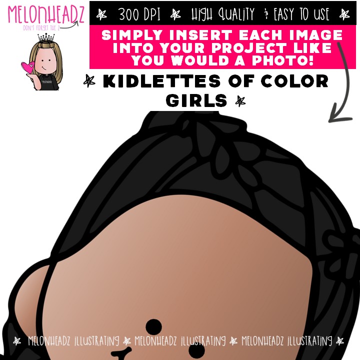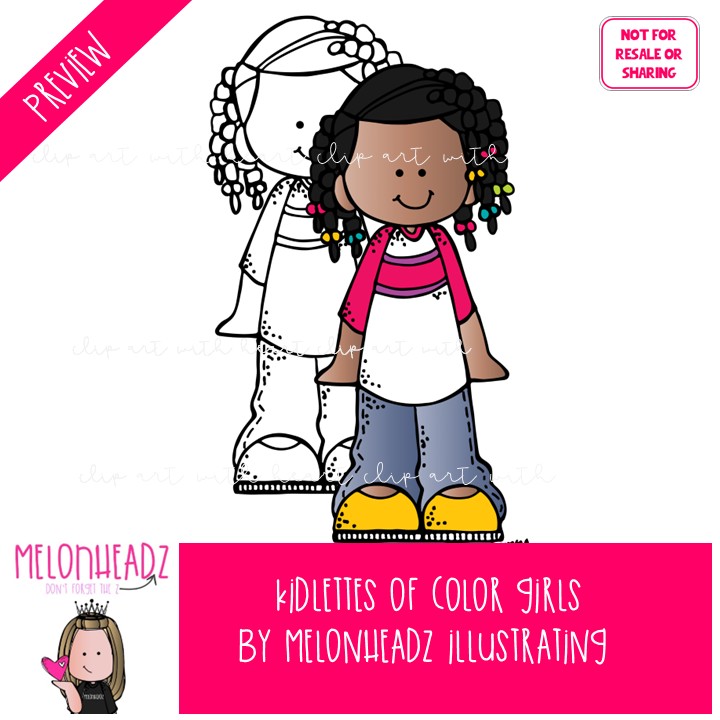 Kidlettes of Color clip art, Girl clip art, African American clip art COMBO PACK: This illustrated set contains all of the clip art images as shown in the preview picture. COLORED and BLACK AND WHITE  illustrations included.