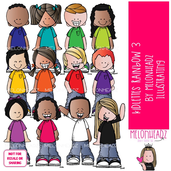 Kidlettes in Rainbow colors 3 COLORED Version: This illustrated set contains all of the clip art images as shown in the preview picture. COLORED illustrations included.