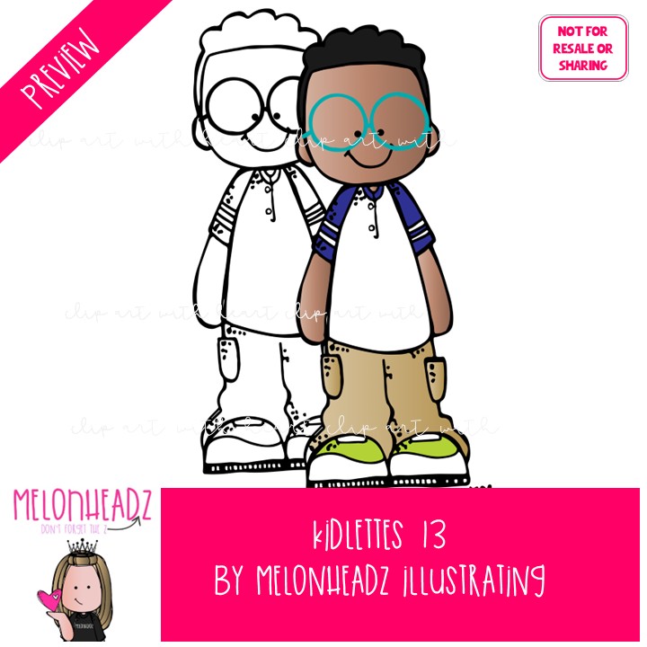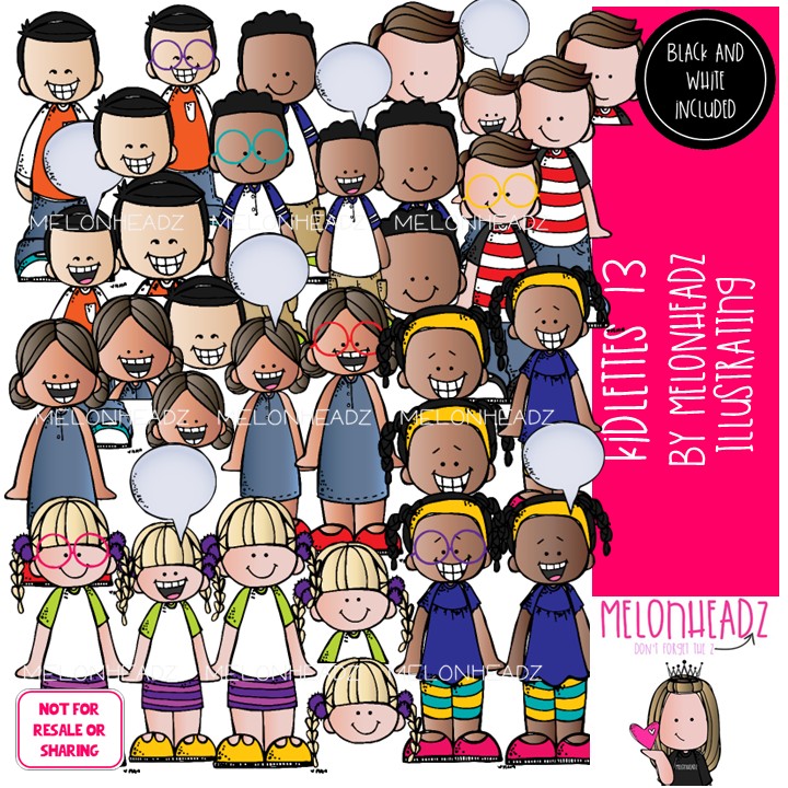 Kidlettes clip art 13, Kids clip art COMBO PACK: This illustrated set contains all of the clip art images as shown in the preview picture. COLORED and BLACK AND WHITE  illustrations included.