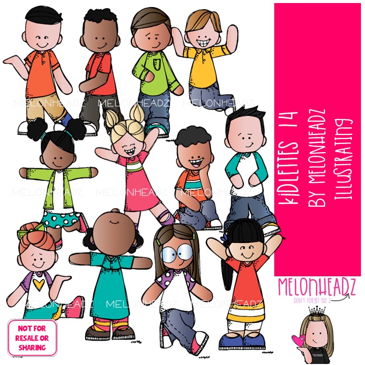 Kidlettes clip art, Kids clip art COLORED Version: This illustrated set contains all of the clip art images as shown in the preview picture. COLORED  illustrations included.