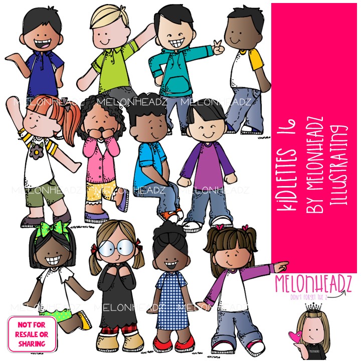 Kidlettes clip art 16, Kids clip art COLORED Version: This illustrated set contains all of the clip art images as shown in the preview picture. COLORED illustrations included.