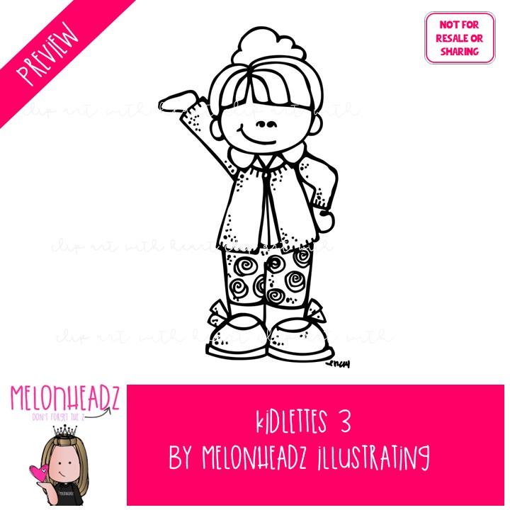 Kidlettes clip art 3, Kids clip art BLACK AND WHITE: This illustrated set contains all of the clip art images as shown in the preview picture. BLACK AND WHITE illustrations included.