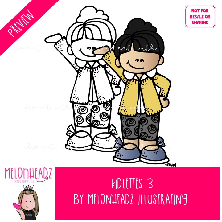 Kidlettes clip art 3, Kids clip art COMBO PACK: This illustrated set contains all of the clip art images as shown in the preview picture. COLORED and BLACK AND WHITE illustrations included.