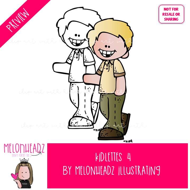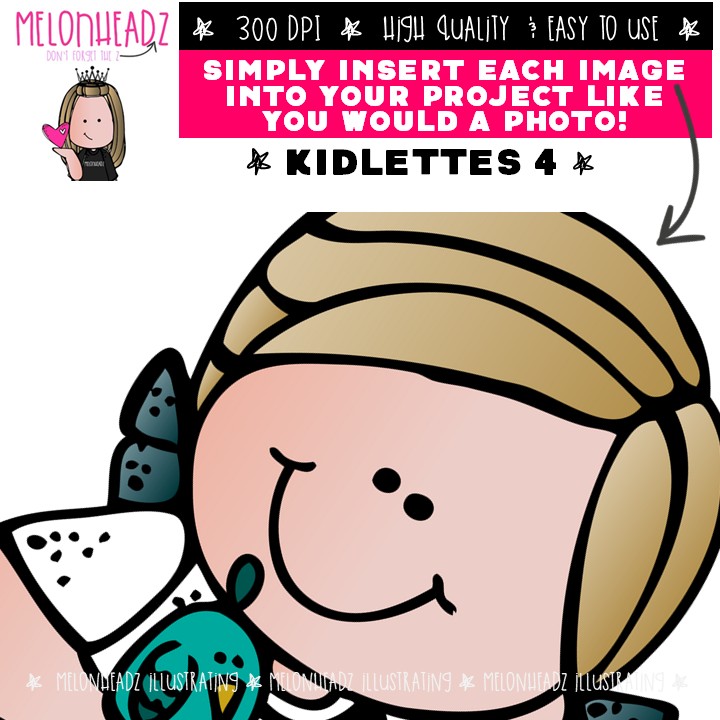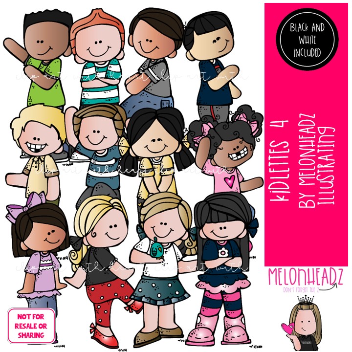 Kidlettes clip art 4, Kids clip art COMBO PACK: This illustrated set contains all of the clip art images as shown in the preview picture. COLORED and BLACK AND WHITE illustrations included.