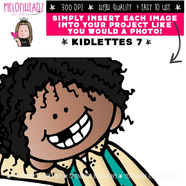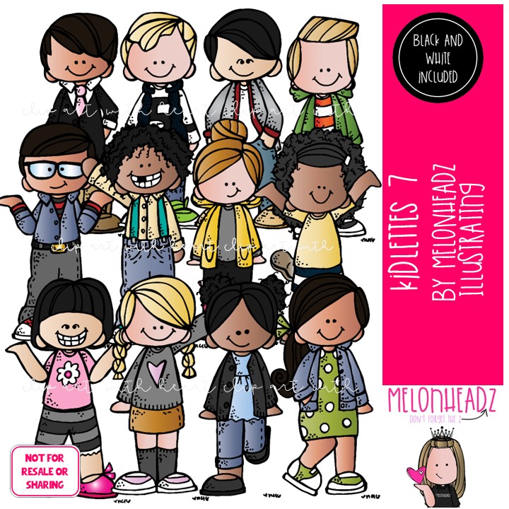 Kidlettes clip art 7, Kids clip art COMBO PACK: This illustrated set contains all of the clip art images as shown in the preview picture. COLORED and BLACK AND WHITE  illustrations included.