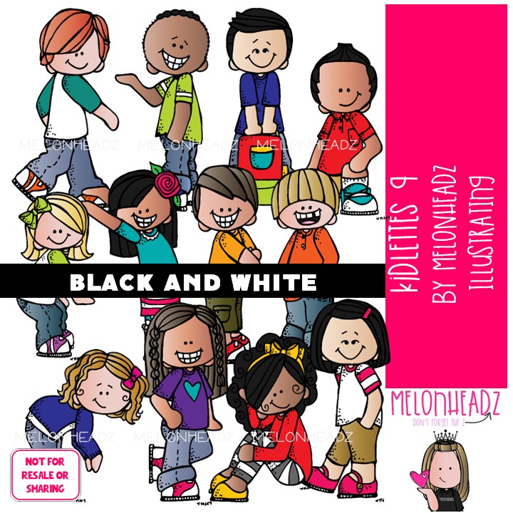 Kidlettes clip art 9, Kids clip art BLACK AND WHITE: This illustrated set contains all of the clip art images as shown in the preview picture. BLACK AND WHITE illustrations included.