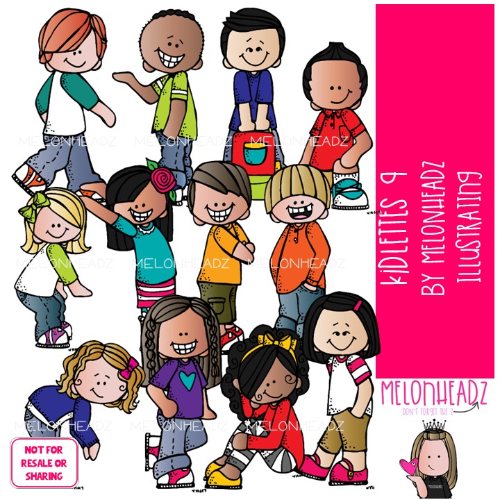 Kidlettes clip art 9, Kids clip art COLORED Version: This illustrated set contains all of the clip art images as shown in the preview picture. COLORED illustrations included.