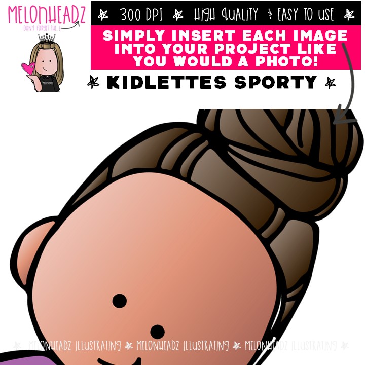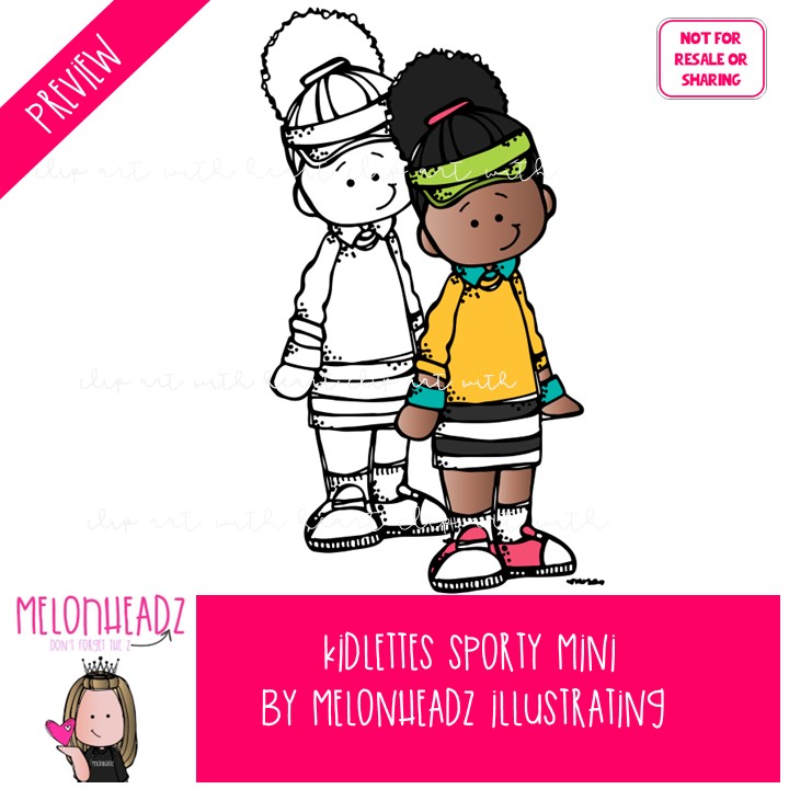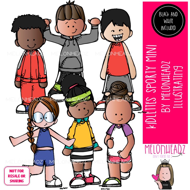 Kidlettes clip art, Sporty clip art, Athletic clip art, Sports clip art Mini: This illustrated set contains all of the clip art images as shown in the preview picture. COLORED and BLACK AND WHITEÂ illustrations included.