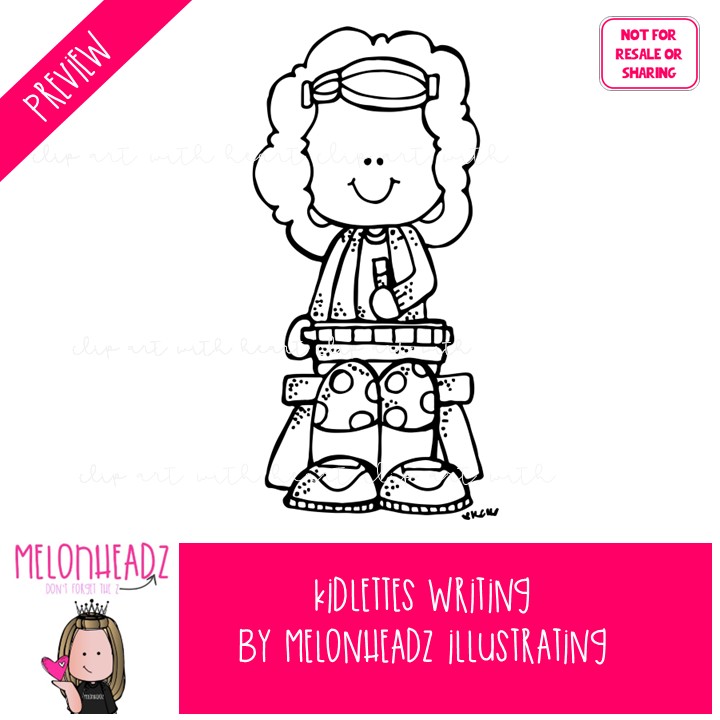 Kidlettes writing clip art, Writers clip art BLACK AND WHITE: This illustrated set contains all of the clip art images as shown in the preview picture. BLACK AND WHITE illustrations included.