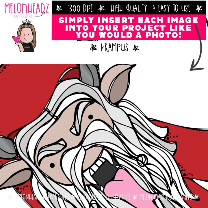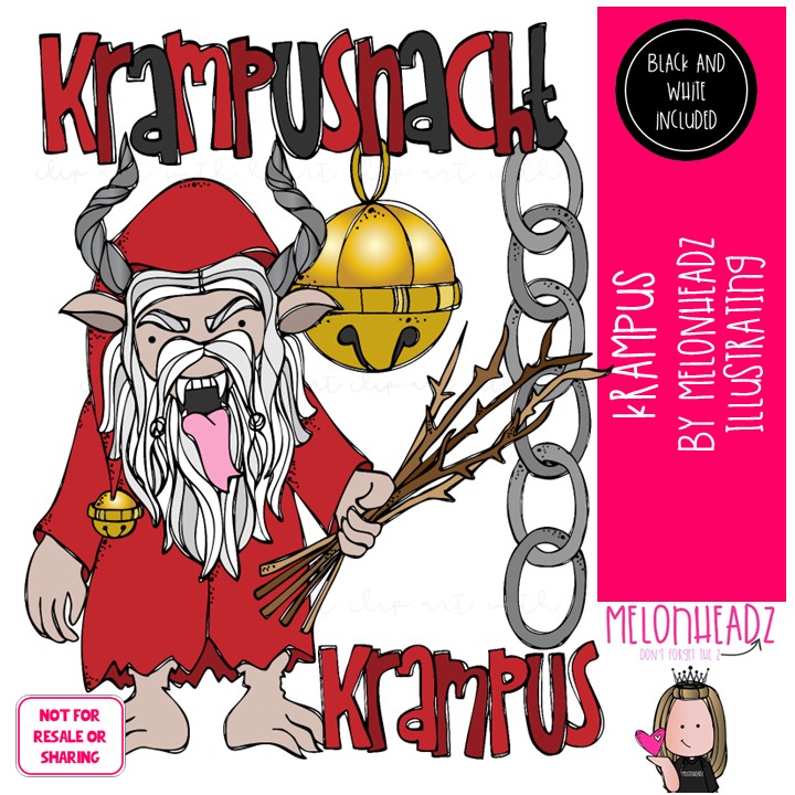 Krampus clip art, Christmas clip art Mini: This illustrated set contains all of the clip art images as shown in the preview picture. COLORED and BLACK AND WHITE  illustrations included.