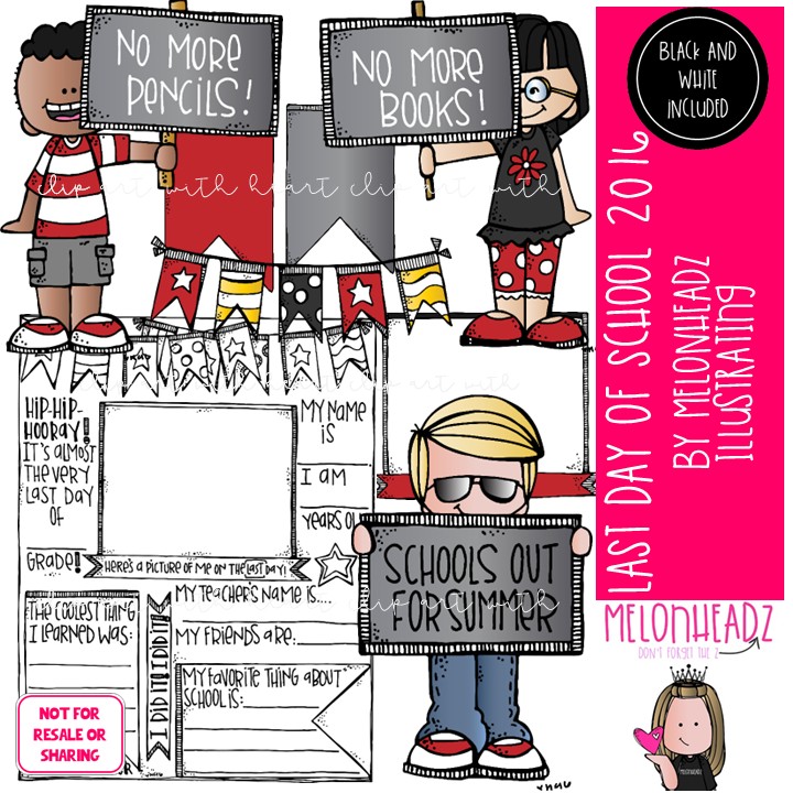 Last Day of School clip art and printable 2016 End of Year clip art: This illustrated set contains all of the clip art images as shown in the preview picture. COLORED  illustrations included.