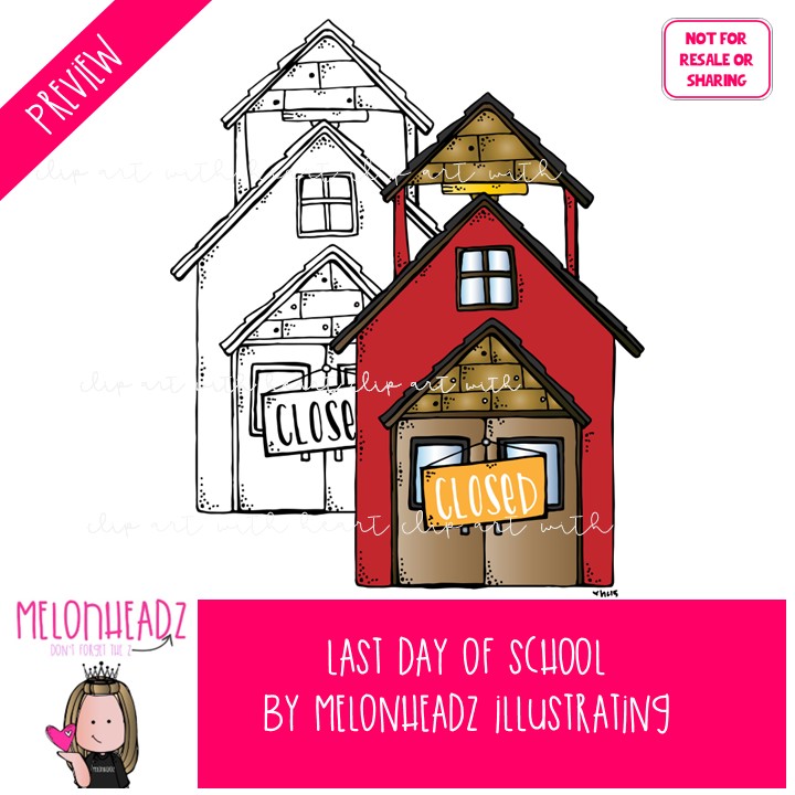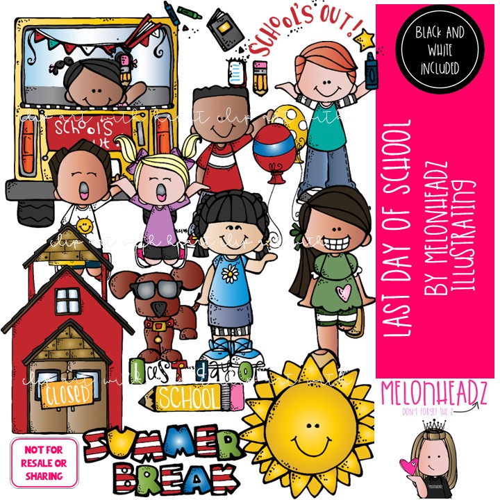 Last Day of School clip art End of Year clip art COMBO PACK: This illustrated set contains all of the clip art images as shown in the preview picture. COLORED and BLACK AND WHITE illustrations included.