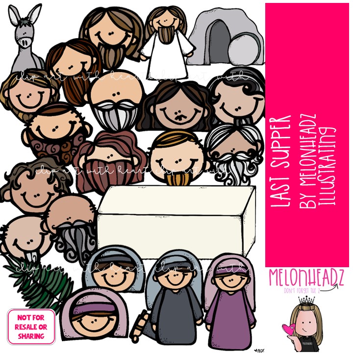 Last Supper clip art, Bible, Jesus COLORED Version: This illustrated set contains all of the clip art images as shown in the preview picture. COLORED illustrations included.