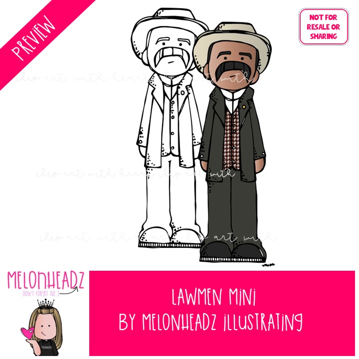 Lawmen clip art, Historical figure MINI: This illustrated set contains all of the clip art images as shown in the preview picture. COLORED and BLACK AND WHITE illustrations included.