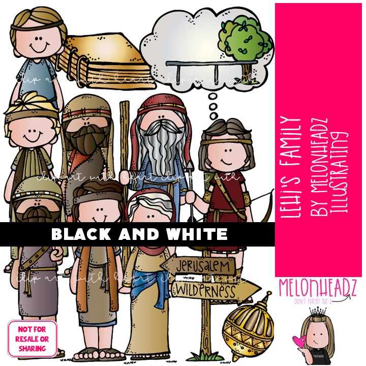 Lehi’s Family clip art, LDS, Book of Mormon BLACK AND WHITE: This illustrated set contains all of the clip art images as shown in the preview picture. BLACK AND WHITE illustrations included.