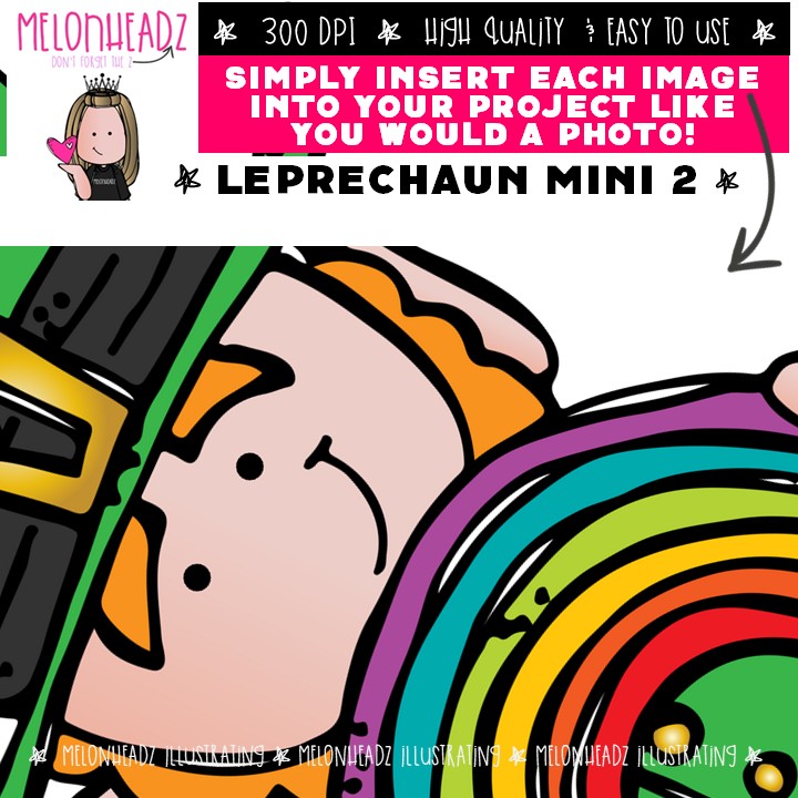 Leprechaun clip art Set 2, St. Patrick’s Day Mini: This illustrated set contains all of the clip art images as shown in the preview picture. COLORED and BLACK AND WHITE illustrations included.