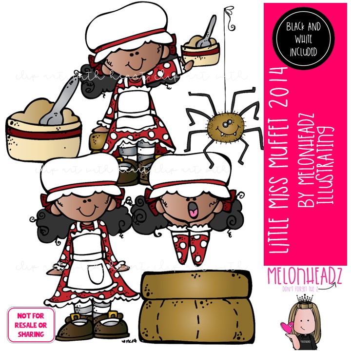 Little Miss Muffet clip art 2014, Nursery Rhyme clip art, Literature Mini