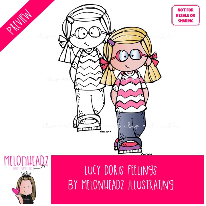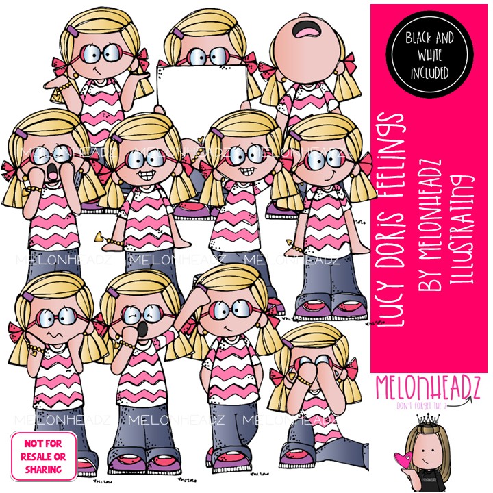 Lucy Doris clip art, Feelings clip art, Emotions clip art COMBO PACK: This illustrated set contains all of the clip art images as shown in the preview picture. COLORED and BLACK AND WHITE illustrations included.