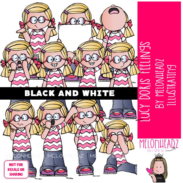 Lucy Doris clip art, Feelings clip art, Emotions clip art BLACK AND WHITE: This illustrated set contains all of the clip art images as shown in the preview picture. BLACK AND WHITE illustrations included.