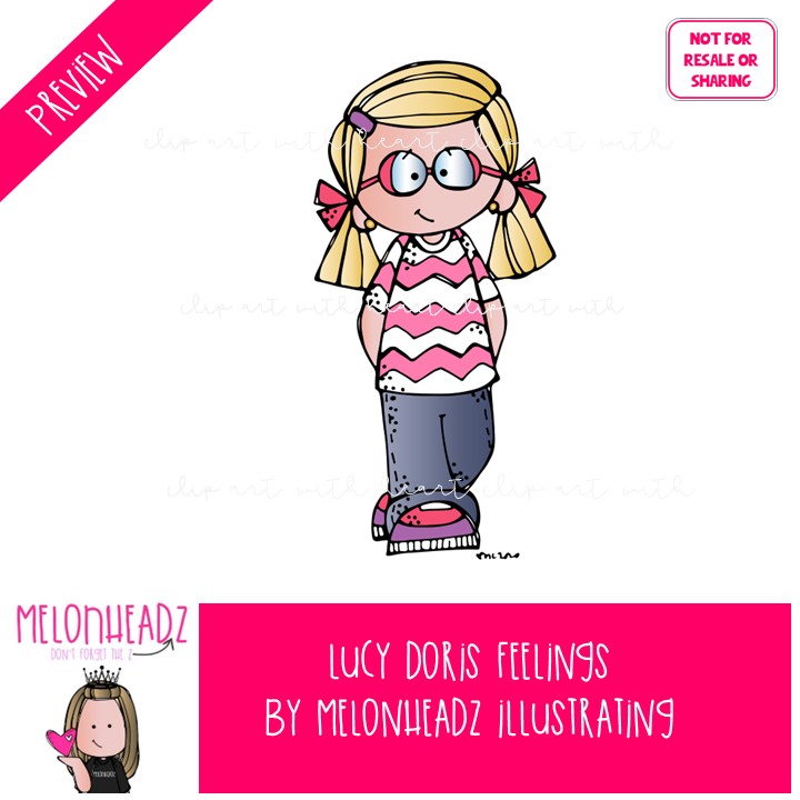 Lucy Doris clip art, Feelings clip art, Emotions clip art COLORED Version: This illustrated set contains all of the clip art images as shown in the preview picture. COLORED illustrations included.