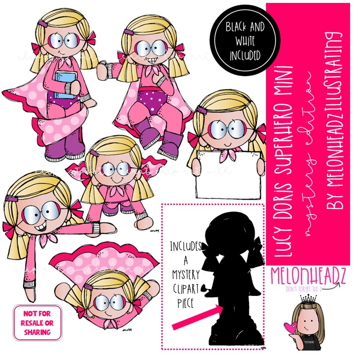 Lucy Doris Superhero clip art, Mystery Edition, superhero clip art: This illustrated set contains all of the clip art images as shown in the preview picture. COLORED and BLACK AND WHITE illustrations included.