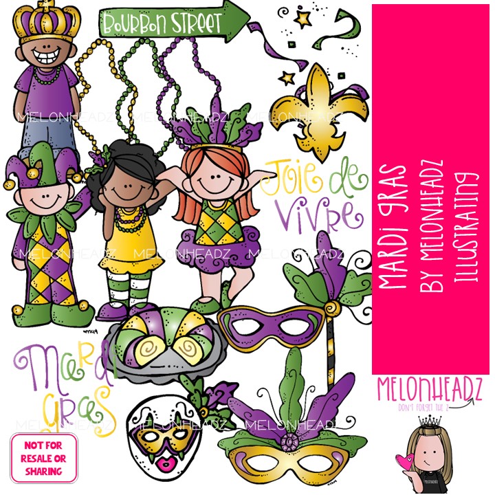 Mardi Gras clip art, party COLORED Version: This illustrated set contains all of the clip art images as shown in the preview picture. COLORED illustrations included.