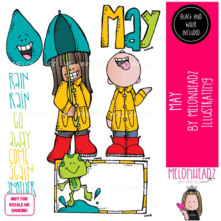 May clip art, Spring Rain clip art Mini: This illustrated set contains all of the clip art images as shown in the preview picture. COLORED and BLACK AND WHITE illustrations included.