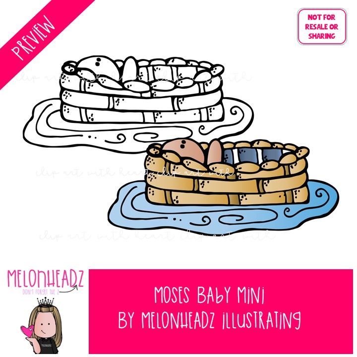 Moses Baby clip art, Bible, pharaoh Mini:This illustrated set contains all of the clip art images as shown in the preview picture. COLORED and BLACK AND WHITE illustrations included.