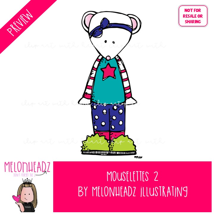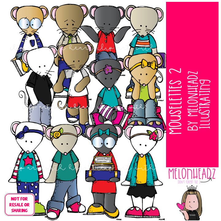 Mouselettes 2 clip art COLORED Version: This illustrated set contains all of the clip art images as shown in the preview picture. COLORED illustrations included.