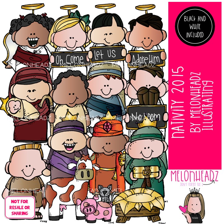 Nativity clip art 2015, Lil Bitz clip art, Christmas clip art COMBO PACK: This illustrated set contains all of the clip art images as shown in the preview picture. COLORED and BLACK AND WHITE illustrations included.