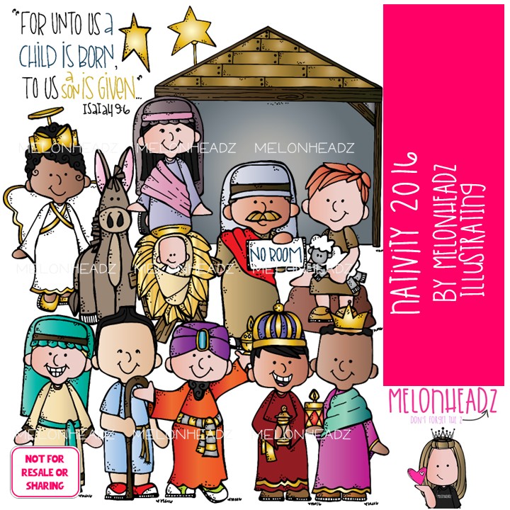 Nativity clip art 2016, Christmas clip art COLORED Version: This illustrated set contains all of the clip art images as shown in the preview picture. COLORED illustrations included.