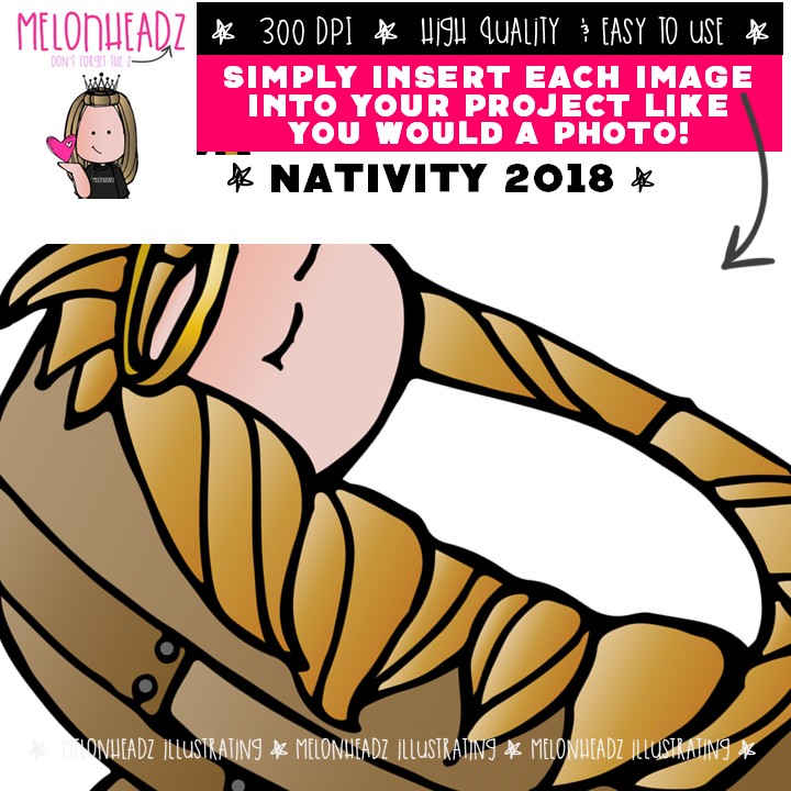 Nativity clip art, Christmas clip art COLORED Version: This illustrated set contains all of the clip art images as shown in the preview picture. COLORED illustrations included.