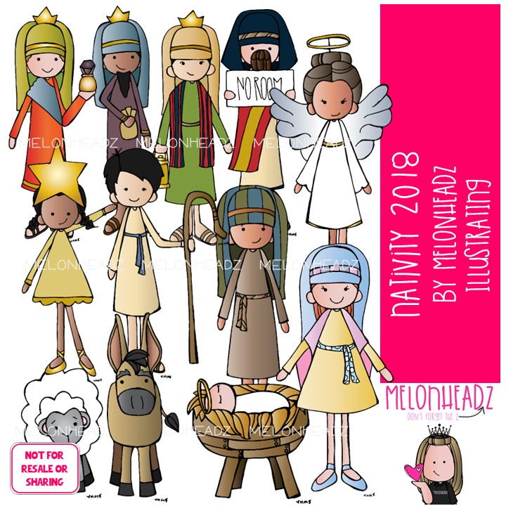 Nativity clip art 2018, PB n Js clip art, Christmas clip art COLORED Version