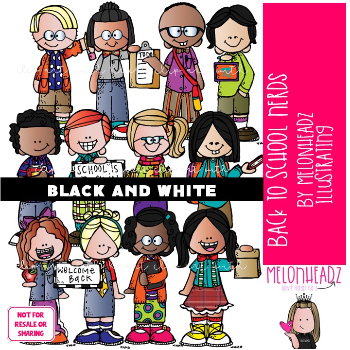 Back to School clip art, Nerds clip art BLACK AND WHITE