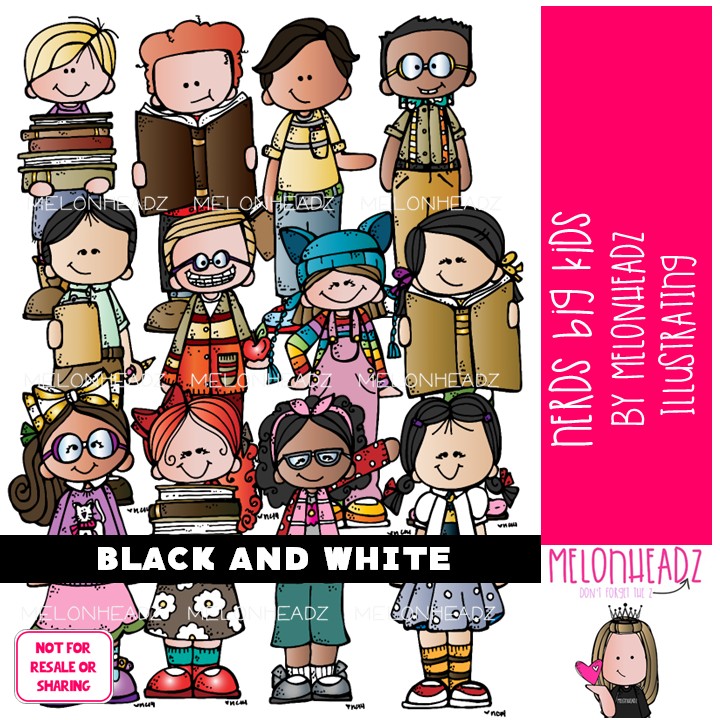 Nerds clip art, Big Kids clip art, Teenager clip art BLACK AND WHITE: This illustrated set contains all of the clip art images as shown in the preview picture. BLACK AND WHITE illustrations included.