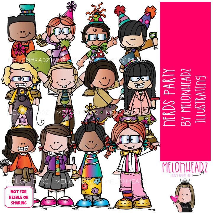 Nerds clip art, Party clip art COLORED Version: This illustrated set contains all of the clip art images as shown in the preview picture. COLORED illustrations included.