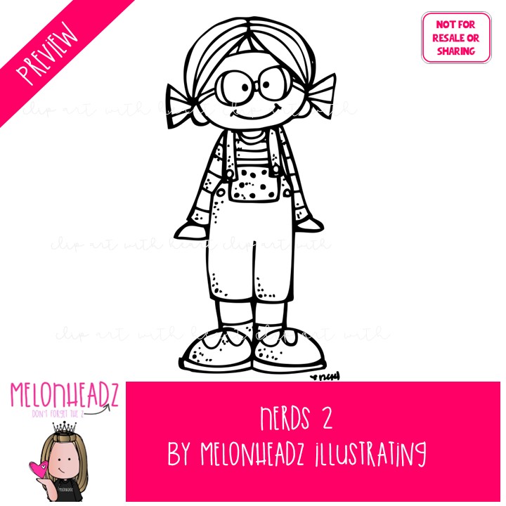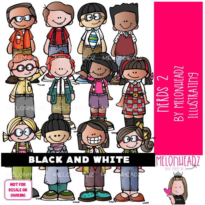 Nerds clip art 2, Kidlettes clip art BLACK AND WHITE: This illustrated set contains all of the clip art images as shown in the preview picture. BLACK AND WHITE  illustrations included.