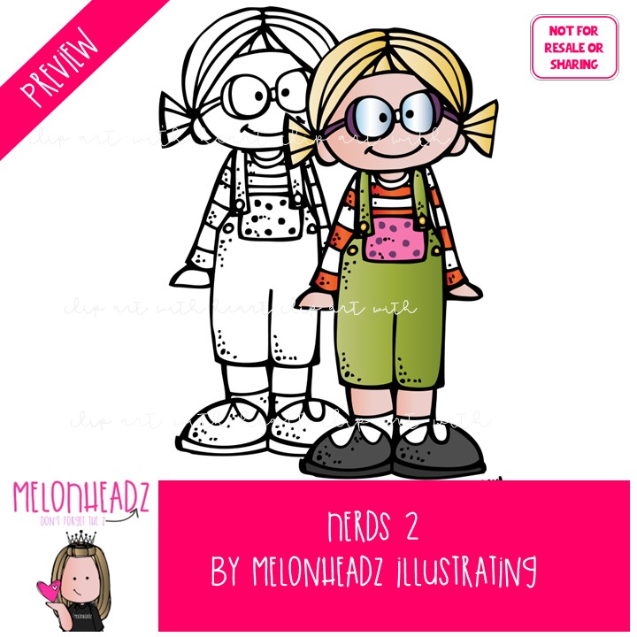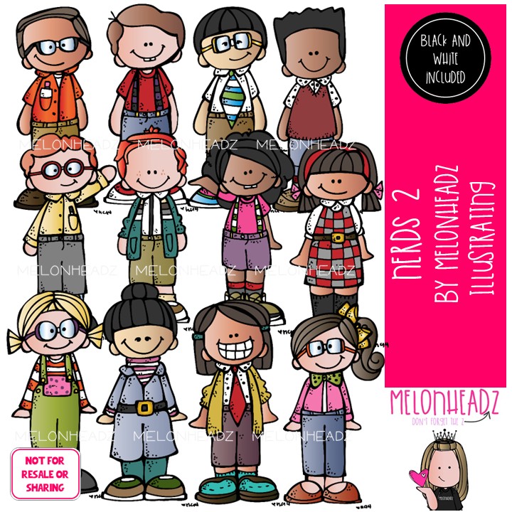 Nerds clip art 2, Kidlettes clip art COMBO PACK: This illustrated set contains all of the clip art images as shown in the preview picture. COLORED and BLACK AND WHITE illustrations included.