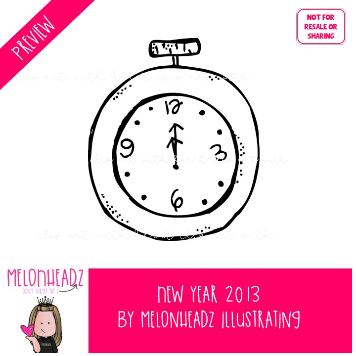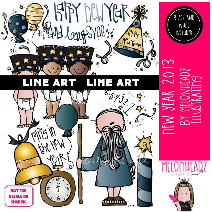 New Year clip art 2013, LINE ART and BLACK AND WHITE: This illustrated set contains all of the clip art images as shown in the preview picture. LINE ART and BLACK AND WHITE illustrations included.
