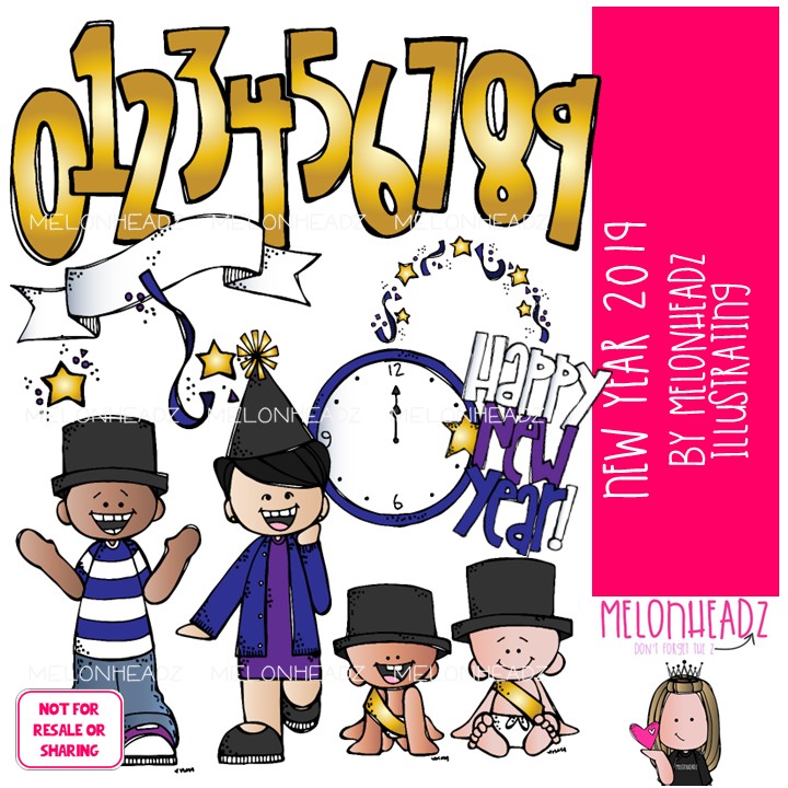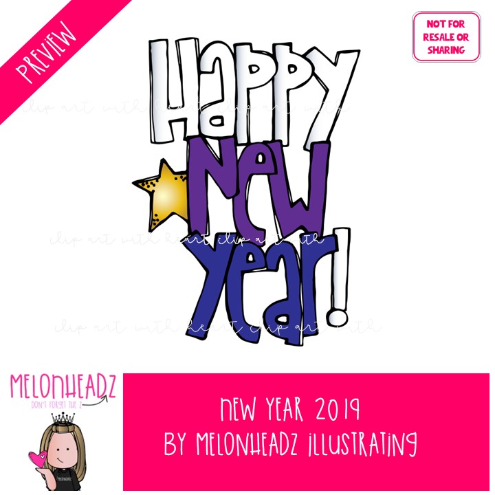 New Year clip art 2019, holiday clip art COLORED Version: This illustrated set contains all of the clip art images as shown in the preview picture. COLORED illustrations included.